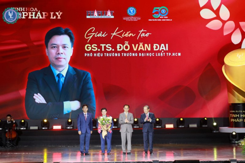 Các học giả được trao giải gồm: GS.TSKH Đào Trí Úc – nguyên Viện trưởng Viện Nhà nước và Pháp luật, nhận Giải Sáng tạo; PGS.TS Hà Hùng Cường – nguyên Bộ trưởng Bộ Tư pháp, nhận Giải Cống hiến; GS.TS Võ Khánh Vinh – nguyên Phó Chủ tịch Viện Hàn lâm Khoa học xã hội Việt Nam, nhận Giải Thành tựu; GS.TS Đỗ Văn Đại, Phó Hiệu trưởng nhà trường, nhận Giải Kiến tạo.