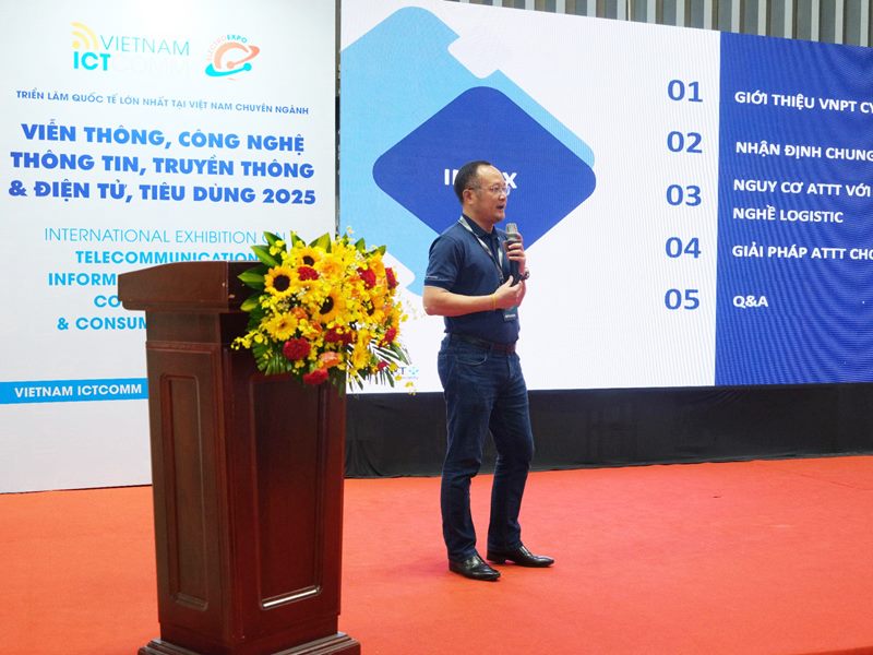 Ông Hồ Trọng Đạt – Phó Giám đốc VNPT Cyber Immunity (VCI) đã có những chia sẻ thực tiễn về xu hướng áp dụng các công nghệ mới như AI, IoT trong việc nâng cao năng lực an toàn thông tin (ATTT) cho ngành Logistics. Thay vì chỉ tập trung tối ưu chuỗi cung ứng, các doanh nghiệp Logistics cần chủ động ứng dụng công nghệ để đối phó với các rủi ro an ninh mạng ngày càng tinh vi trên không gian số.