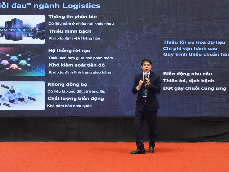Ngành logistics đóng vai trò then chốt trong chuỗi cung ứng toàn cầu với quy mô thị trường khổng lồ, đặc biệt tại Việt Nam đang tăng trưởng mạnh nhờ thương mại điện tử và toàn cầu hóa. Trong bài trình bày của mình, ông Nguyễn Tuấn Huy phân tích ngành này đối mặt với nhiều “nỗi đau” như hệ thống rời rạc, dữ liệu không đồng bộ, thiếu minh bạch và chi phí vận hành cao.