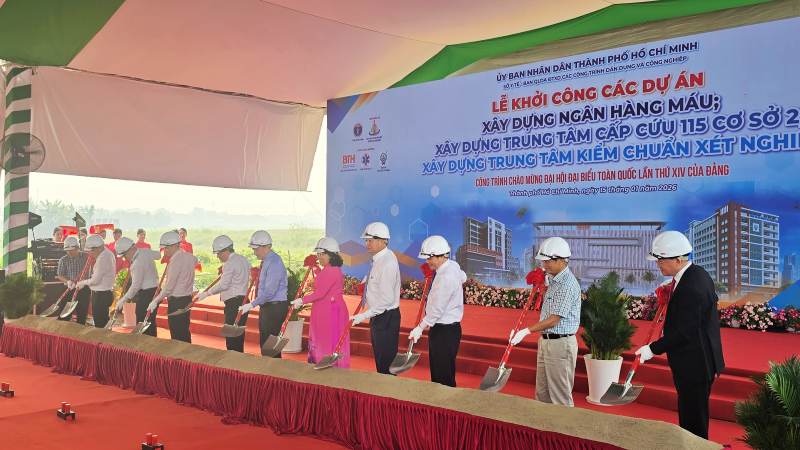 Ngày 15/1, tại Cụm y tế Tân Kiên (xã Tân Nhựt, huyện Bình Chánh), TPHCM khởi công 3 dự án y tế trọng điểm gồm: Ngân hàng máu, Trung tâm Cấp cứu 115 – Cơ sở 2 và Trung tâm Kiểm chuẩn Xét nghiệm TPHCM với tổng mức đầu tư hơn 1.000 tỷ đồng.