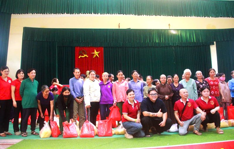 Tại xã Liên Sơn, Hà Nam Bầu show Thủy Lê cùng nhóm của mình cũng tiếp sức 40 phần qua tiền mặt 300.000 gửi đến những hộ dân có nhà cửa ngập nặng.